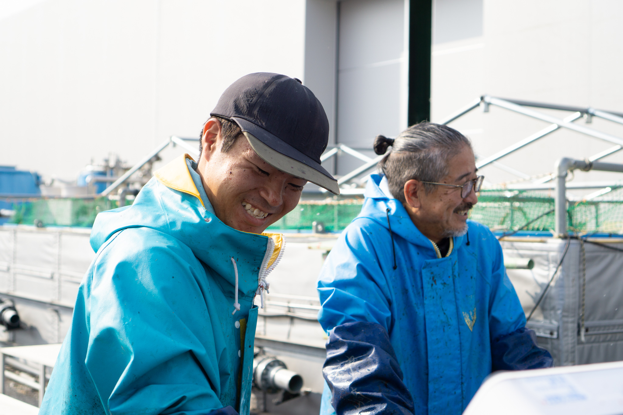 専門知識やスキルは必要なく、少しずつ慣れていく中で「魚を扱う仕事」の奥深さと面白さを感じられます。締め作業で魚を手に取り、「こいつ、立派やなぁ」と声を漏らしていたのはスタッフの神﨑さん。手塩にかけて育てた魚の出荷を感慨深く見送るその目には、穏やかに流れる毎日の中にしっかりとした充実感が映っていました。